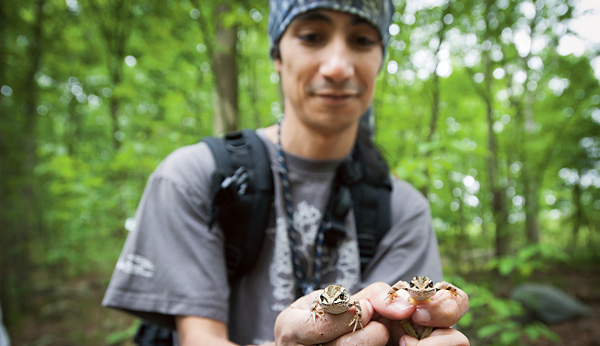 A team of more than 20 explorers—Janelia Farm employees and their nature-loving recruits—are combing the terrain: rolling aside logs, prodding leaf piles, and gently displacing stones. The reptiles and amphibians they seek out do little to announce themselves, but this is an observant group, and the finds come quickly.