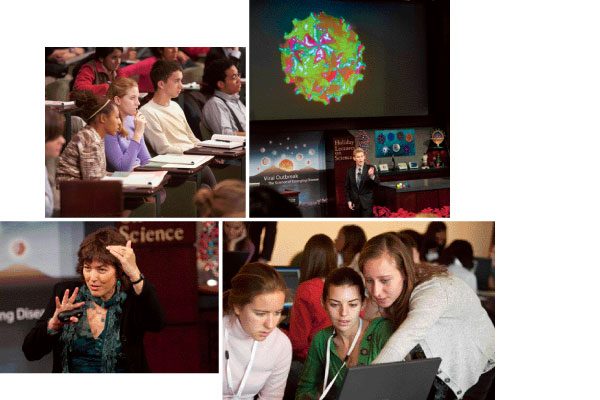Viruses that kill by causing SARS and dengue fever. Viruses that fell parrots and destroy colonies of bees. Almost 200 high school students from across the Washington, D.C., area learned firsthand how scientists study the emergence and spread of these and other deadly viruses on December 2–3 at the 2010 Holiday Lectures on Science. At least 3,000 others watched the live webcast of the lecture series, Viral Outbreak: The Science of Emerging Disease.