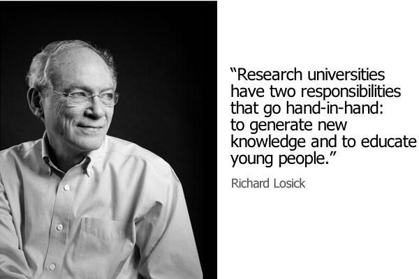 Richard Losick became a scientist in part because of one professor’s enthusiasm and high expectations. now, as an HHMI Professor at Harvard, Losick is determined to show students that a life in science does not resemble a semester taking notes in the lecture hall. Universities should encourage creative teaching, says Losick, just as they reward outstanding research.
