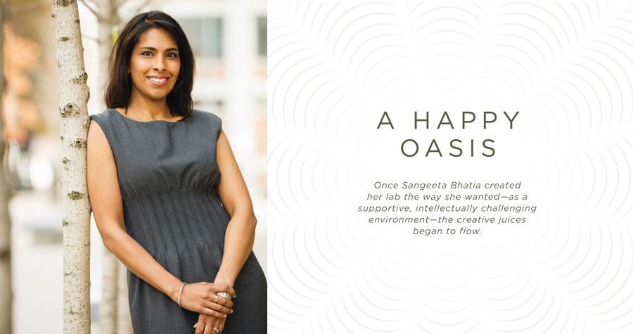 As a student at MIT and Harvard Medical School, studying both bioengineering and medicine, Bhatia didn’t exactly dream about running an academic lab of her own. Her professors seemed harried, her labmates worked through the night, and the intensity and competitive atmosphere did not mirror the lifestyle she wanted. “When I looked up the pipeline,” she recalls, “I wanted to know whether there were people who were married, had kids … were normal.” And as an aspiring female engineer in the 1990s, Bhatia found few role models in academia.
