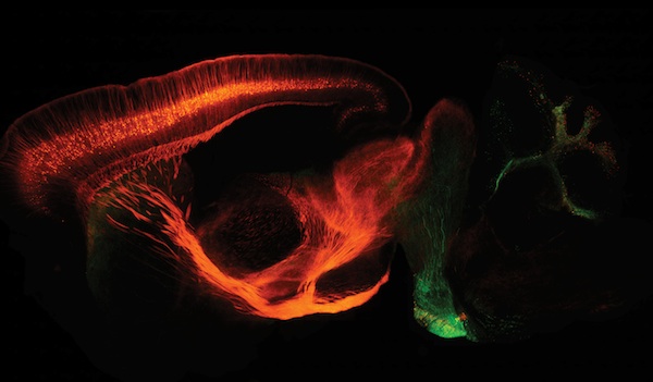 Scientists at the Howard Hughes Medical Institute’s Janelia Research Campus and the University of California, Berkeley have developed a powerful new tool for neuroscientists—a viral vector called rAAV2-retro, which efficiently enters and travels through the long neuronal projections that connect different regions of the brain. Genetically-encoded tools for labeling cells or monitoring or manipulating their activity can be packaged inside the virus and delivered to groups of neurons that signal to a specific part of the brain, creating new opportunities to study large-scale neural networks.