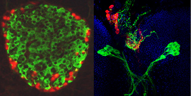 Regulation of growth and metabolism by insulin and glucagon-like peptides is a conserved feature in metazoans. Despite this ancient regulatory heritage and a century of knowledge that islet hormones are crucial to human health, our understanding of the genetic basis for pancreatic islet cell differentiation, expansion, and function is surprisingly meager. We discovered the metabolic functions of endocrine cells that secrete insulin and glucagon-like peptides in Drosophila melanogaster, an organism superbly suited for discovering genes governing tissue and organ development. Our studies showed remarkable physiological parallels between these Drosophila endocrine cells and pancreatic islet β- and α-cells, including the mechanisms governing glucose sensing and hormone secretion. These parallels motivated us to investigate the lineage and molecular mechanisms regulating development of these cells, with a goal to identify conserved regulators of islet cell development and function. Our current work is also focused on using fly genetics and physiological studies of insulin-producing cells to investigate the function of genes implicated in human type 2 diabetes.
