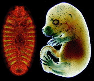 One focus of our work has been Ptc, a Hh receptor protein encoded by a gene called patched (ptc). Hh binds to Ptc on the surfaces of receiving cells and causes them to choose a certain pathway of differentiation (e.g., motor neuron) or to divide. Since Hh and Ptc proteins act in opposition, the Ptc protein provides restraint designed to prevent excessive production of certain types of cells and to rein in growth. We showed that reduction or elimination of ptc function during mouse development leads to spina bifida, polydactyly, midbrain overgrowth, defects in the heart, and excessive body size. We found that mutations in human PATCHED (PTCH) cause a variety of birth defects, medulloblastoma of the cerebellum (the most common childhood malignant brain tumor), and basal cell carcinoma of the skin (the most common human cancer).