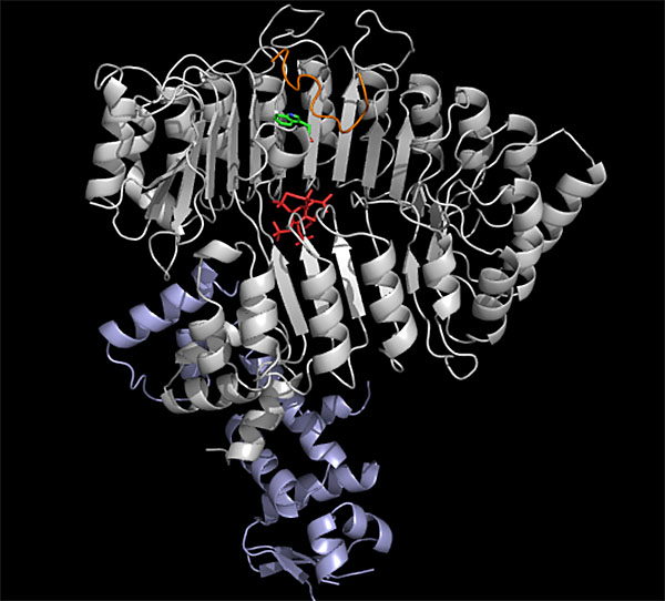 The discovery that the F-box protein TIR1 functions in auxin perception established an exciting new paradigm for hormone perception. One of our major projects addresses the function of this new class of hormone receptors. TIR1 consists of the F-box domain and 18 leucine-rich repeats (LRRs), a domain that is important for interaction with other proteins. Structural studies by Ning Zheng (HHMI, University of Washington), in collaboration with my group, revealed that the LRRs fold into a horseshoe-shaped structure that surrounds an open auxin-binding pocket. A sequence in the Aux/IAA protein called a degron interacts with the auxin molecule and adjacent TIR1 residues, thus covering the pocket.