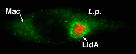 One of the transported proteins, LidA, is a large protein that forms a coiled-coil structure and appears to bind membrane vesicles that originate from the host endoplasmic reticulum (ER). It does this by associating with members of the Rab family of proteins that are found in the host macrophage. Members of this family, when activated, control the transport, docking, and fusion of membrane vesicles to target compartments. A second transported bacterial protein, SidM, activates a Rab protein. When the activation activity of SidM is combined with the binding activity of LidA, the two bacterial proteins are able to tether macrophage vesicles to beads. The tethering event mimics processes observed during growth of the bacterium in macrophages. A third protein, SdhA, is necessary to prevent the killing of host cells byL. pneumophila. In the absence of SdhA, L. pneumophila cannot grow in macrophages because the macrophages die.