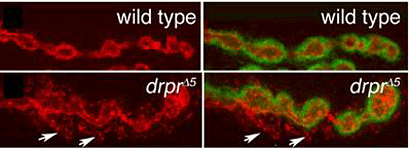 We are interested in understanding how axons undergo autodestruction and autonomously tag themselves for engulfment by glia. For more than a century, severed axons were thought to waste away passively due to a lack of nutrients from the cell body. However, the identification of the slow Wallerian degeneration (Wlds) molecule, which can suppress axon degeneration in mice for weeks after axotomy, forced us to reconsider this notion. It is now thought that Wallerian degeneration may be an active program of axon autodestruction, akin to apoptotic death, that is somehow suppressed by Wlds. We recently discovered that severed Drosophilaundergo Wallerian degeneration that can be strongly suppressed by mouse Wlds (Figure 4); thus the molecular mechanisms driving Wallerian degeneration and Wlds function are conserved in Drosophila and mammals.