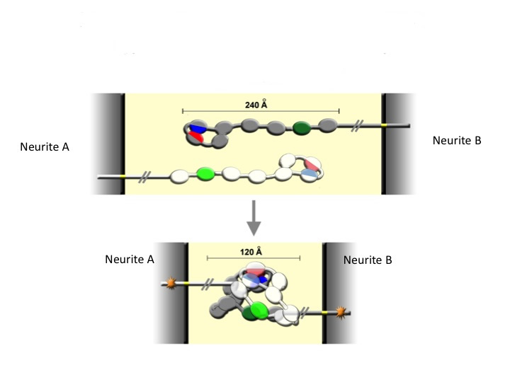 Figure 2: Dscam1 protomers undergo a conformational change upon homophilic binding.
