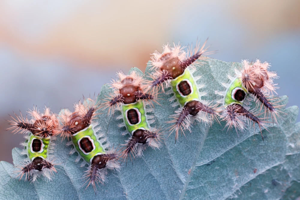 Who wants a caterpillar ride? Actually, there are several reasons why you shouldn’t jump on the back of these saddleback slugs, despite their common name. First, they are tiny. Second, they have no bones. And third, those spiky hairs are filled with a venom that causes symptoms ranging from those similar to a bee sting to, rarely, a weeklong, painful, swollen rash.