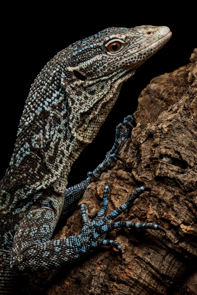 These monitor lizards are native to the island of Batanta in Indonesia. They are now a protected species in Indonesia and no legal collection of them is allowed from the wild. They are also an endangered species on the International Union for the Conservation of Nature’s Red List because of habitat loss to agriculture and poaching (illegal collecting for the pet trade). But they are being bred in captivity by reptile enthusiasts, often as a part of breeding programs, in the hope of reintroducing them to their natural environment.