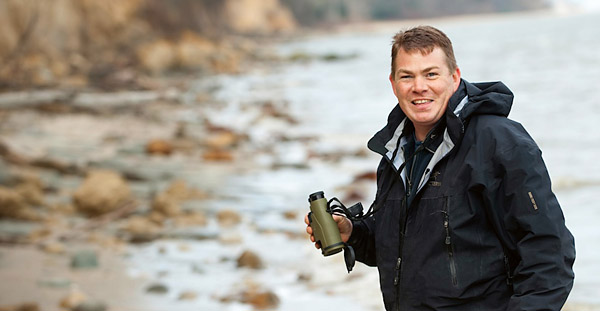 On this brisk midwinter day, Osborne scours the tideline for tiny tiger shark teeth and other fossil remnants. After a time, he turns his trained eye upward, to the steep cliffs rising above the beach. A glint of white catches his eye. “That might be something,” he says and reaches for his binoculars. With the powerful glasses, he can make out a flat, chalky circle with what appear to be white extensions coming out of the side. Though state laws prohibit him from climbing the unstable cliff to investigate, he plans to report the find to his friends at the Calvert Marine Museum.