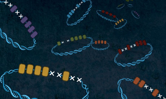 Alt and his colleagues have developed a technique that enables them to home in on one type of chromosome damage, double-strand breaks, in which the DNA double helix is severed. Cells typically mend these injuries by stitching the DNA ends back together. But cells sometimes attach the ends from one break to the ends from another break that is on the same chromosome or even on another chromosome that happens to be nearby. As a result, pieces of DNA can move within and sometimes between chromosomes.