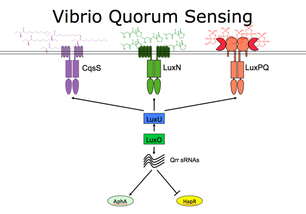 From making vitamins to digesting our food to inflicting us with debilitating diseases, bacteria are busy. How do these single-celled microbes pull it off? The answer lies in part with quorum sensing – a molecular communication system that Bonnie Bassler studies in her lab. Bacterial cells use quorum sensing to count themselves, determine when they have reached an optimal density, and adjust their behavior synchronously for tasks that require many cells working together. For example, when virulent bacteria invade a host organism, they wait until their numbers exceed a critical mass before secreting toxins. Timing is key. If bacteria release these toxins too soon, they risk getting wiped out by the host immune system.